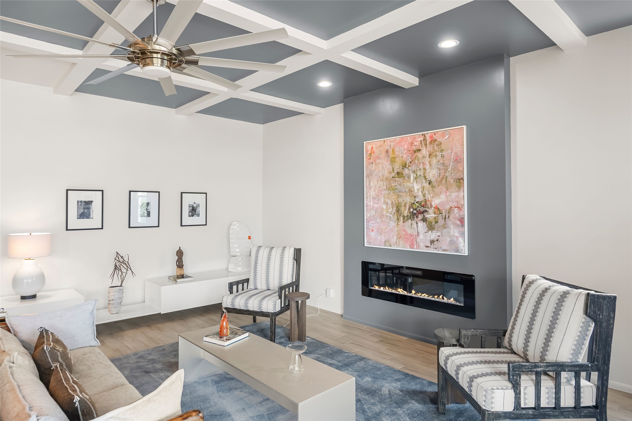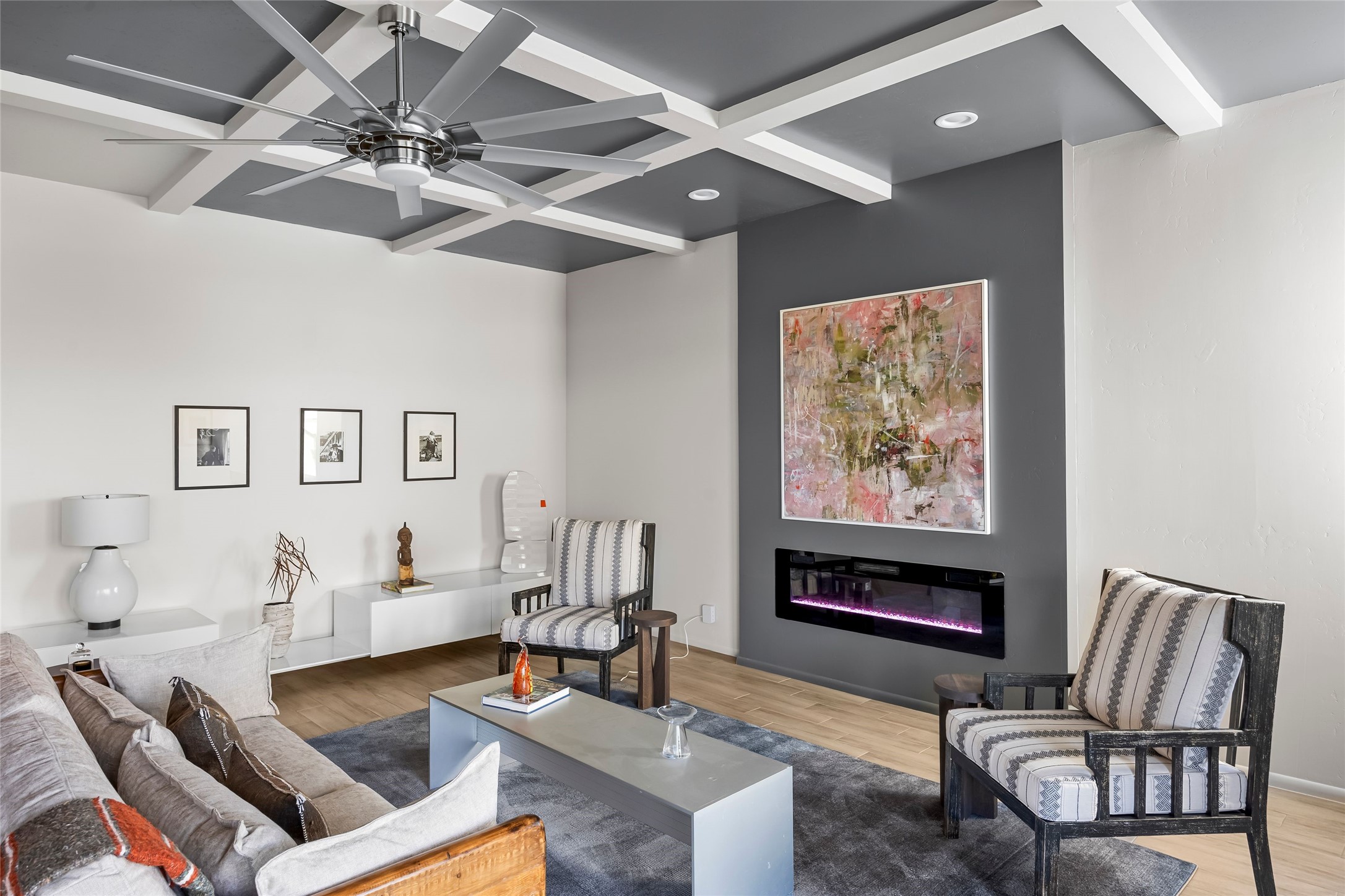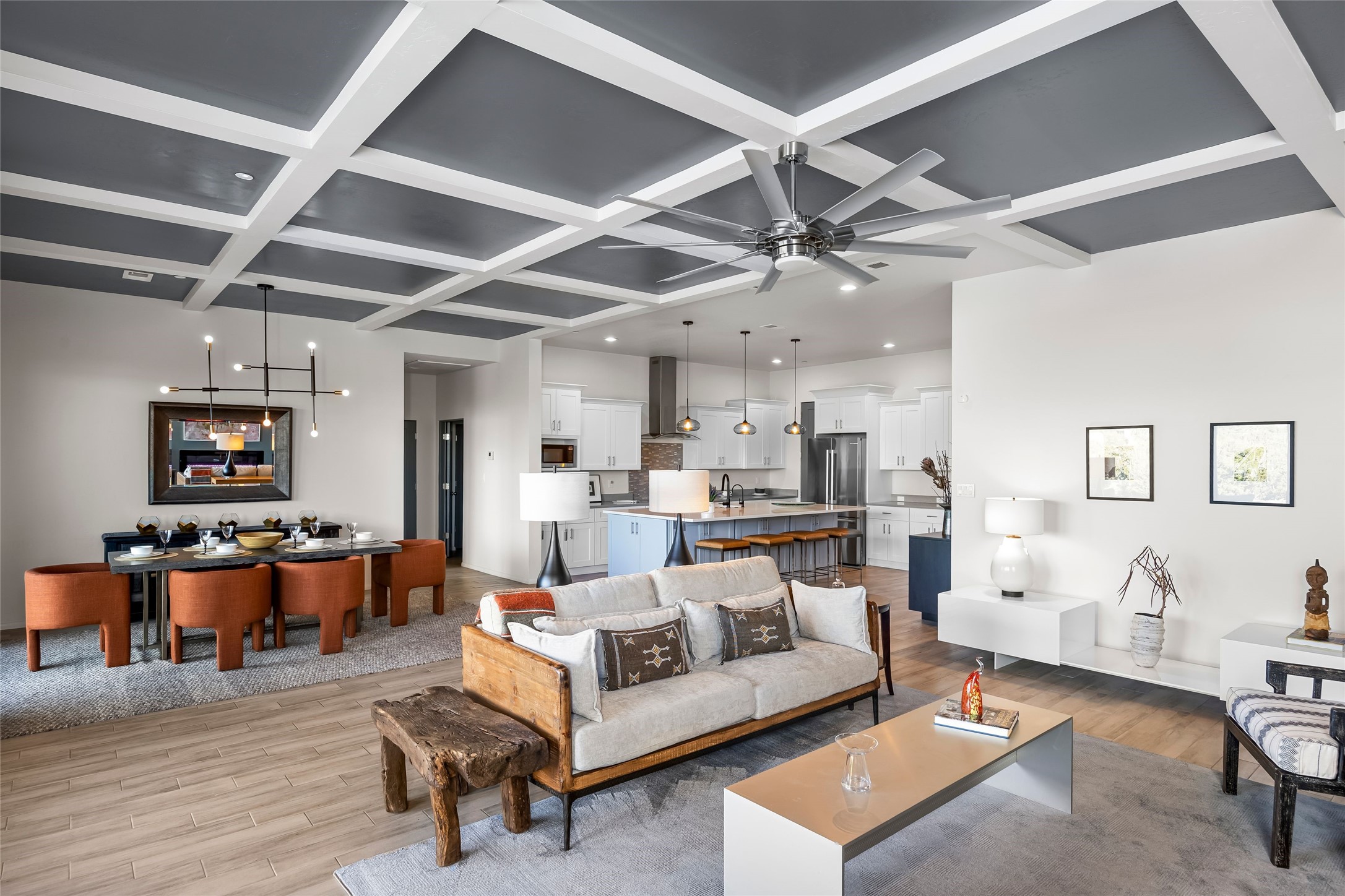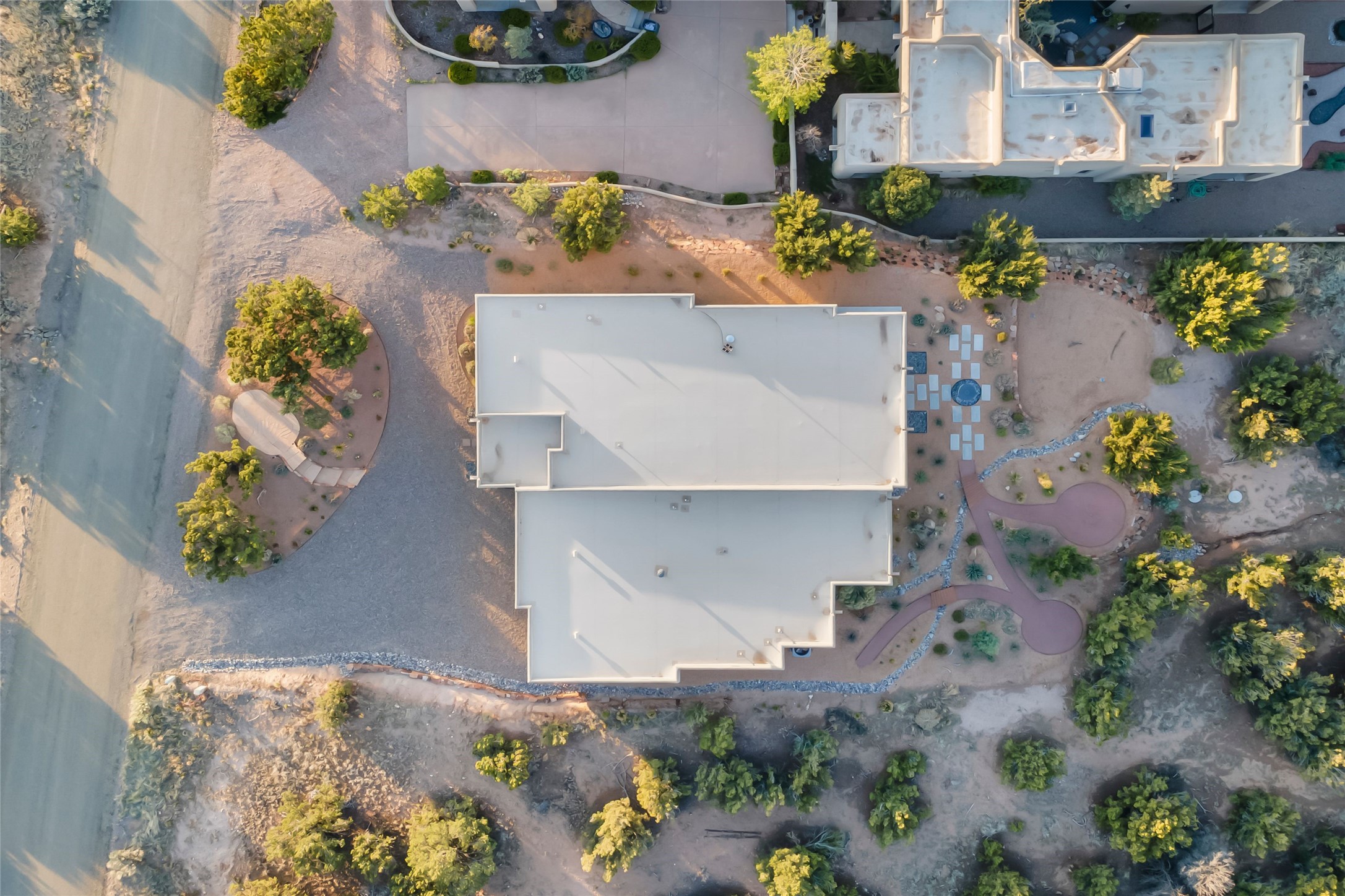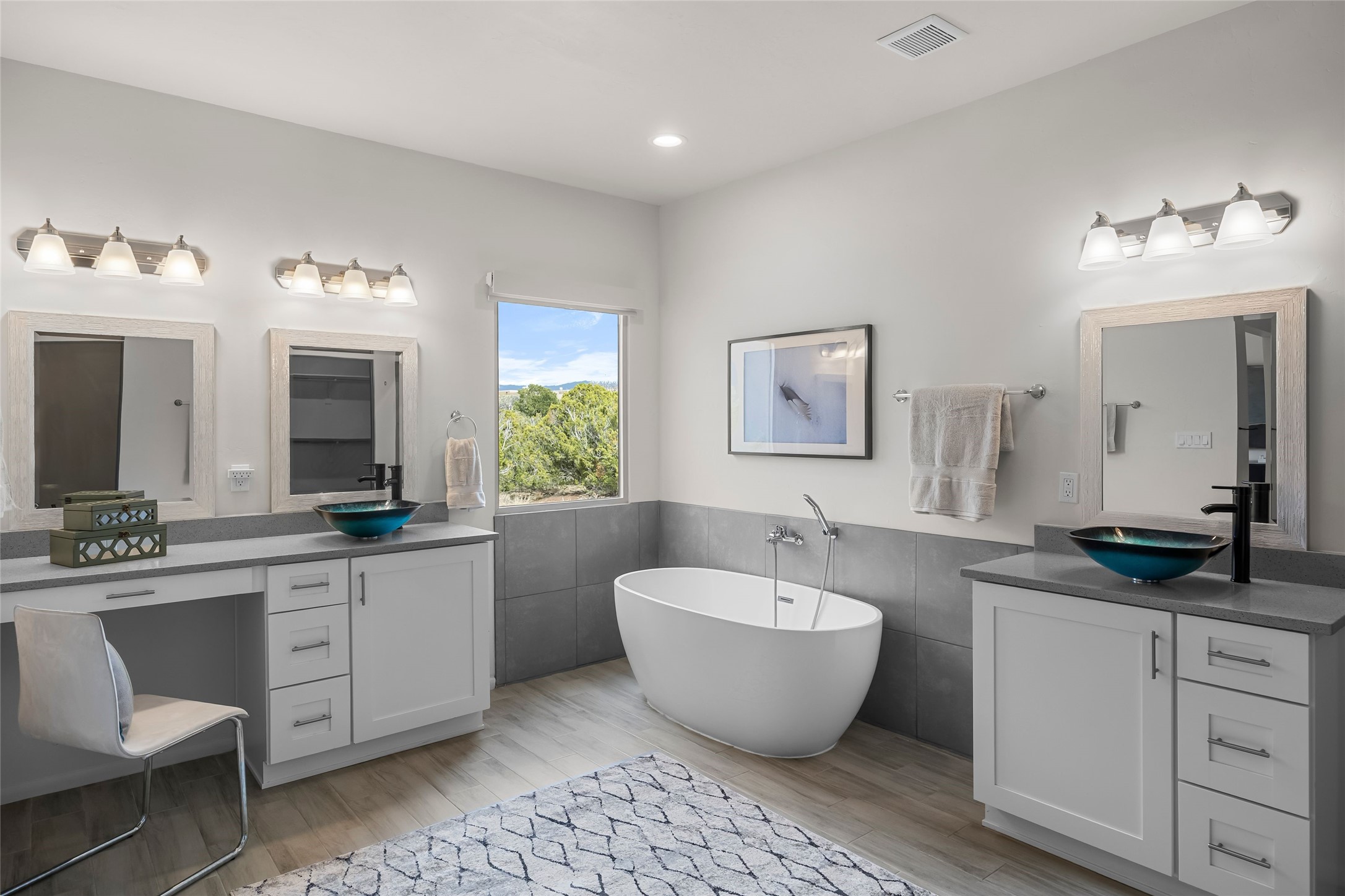 Welcome to 14 Plano Arbolito—where sleek contemporary design meets the serene beauty of Santa Fe’s natural landscape. Perched on a half acre in the desirable Tano West neighborhood, this recently built, single-level home offers the perfect balance of luxury, comfort, and breathtaking views. This three-bedroom, three-bathroom residence boasts an open-concept floorplan designed for effortless living and entertaining. The expansive great room features soaring ceilings, a modern electric ambiance fireplace, and floor-to-ceiling windows that frame spectacular views of the Sangre de Cristo Mountains. The adjacent chef’s kitchen is equipped with premium stainless-steel appliances, a generous island with counter seating, a walk-in pantry, and elegant finishes that blend form and function. Retreat to a tranquil owner’s suite complete with outdoor access, a spa-like bathroom with a soaking tub, dual vanities, a spacious shower, and two oversized walk-in closets—one currently used as an office or yoga space. A separate guest wing includes two private bedrooms, one with its own entrance and en suite bath, perfect for visitors or extended stays. Step outside to a deep-covered portal with gas fireplace hookups and a custom fountain, ideal for enjoying Santa Fe’s vivid sunsets and star-filled nights. The fully landscaped, xeriscape backyard opens to panoramic vistas and unmatched privacy. Additional highlights include an oversized three-car garage, a flexible bonus room off the entry, and many thoughtful upgrades—from whole-house air purification to premium lighting and smart home features. Only 20 minutes from the Plaza and nestled within a community known for its protected open space, 14 Plano Arbolito offers peace, luxury, and a front-row seat to Santa Fe’s majestic beauty.