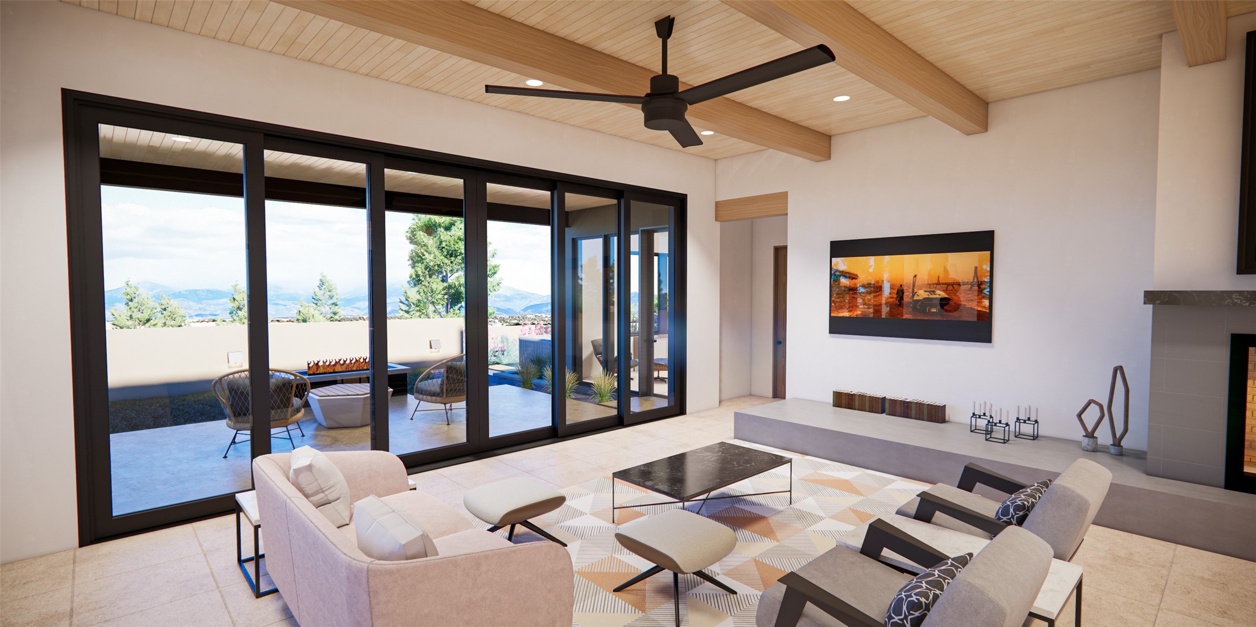 Thoughtfully designed to frame sweeping panoramas of the Sangre de Cristo and Jemez Mountains, this exceptional residence captures some of Santa Fe’s most iconic scenery. Set on a .80-acre homesite, the three-bedroom, three-bath home offers a seamless blend of refined design and effortless livability. An expansive and flexible studio, gym, or office provides versatility for creative pursuits, wellness, or remote work, while generous covered portals invite year-round outdoor living and entertaining. A private, sunken patio—perfectly positioned for a hot tub—offers a tranquil retreat for soaking under brilliant night skies and endless mountain views.