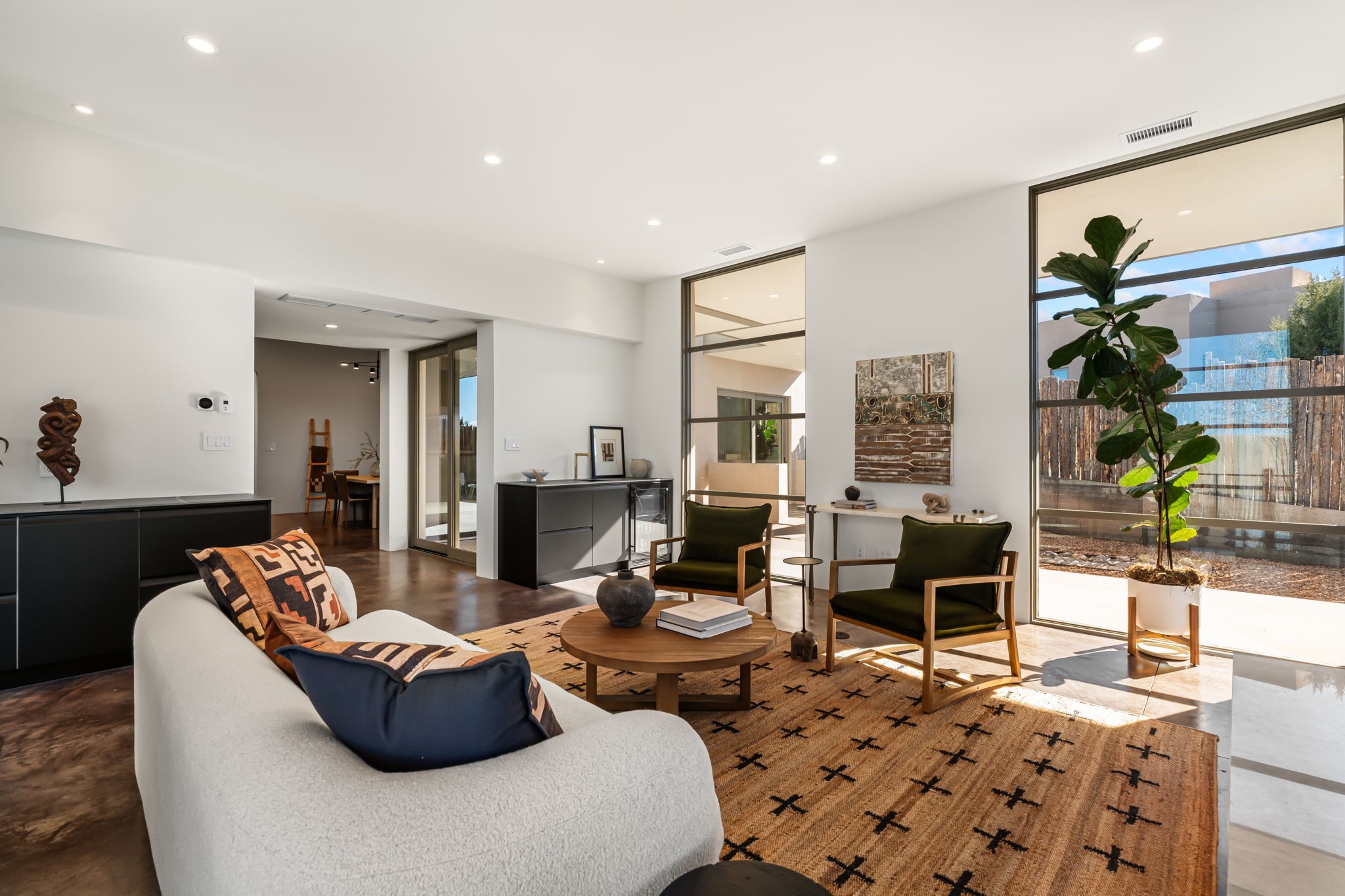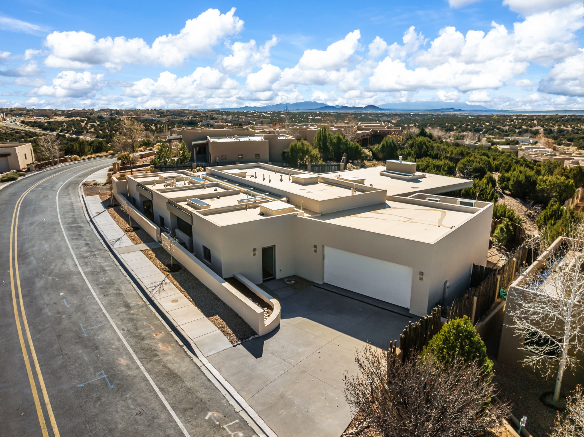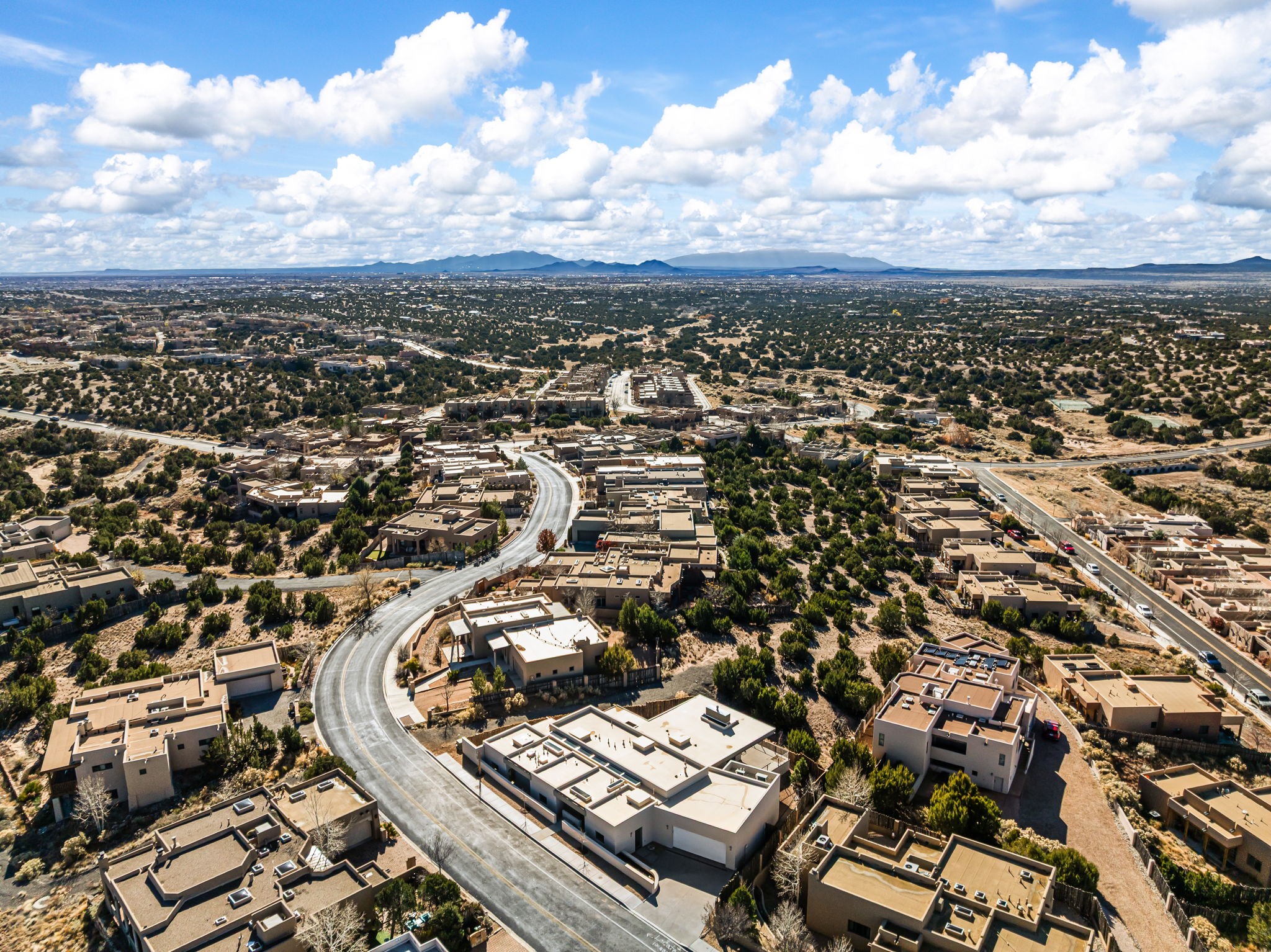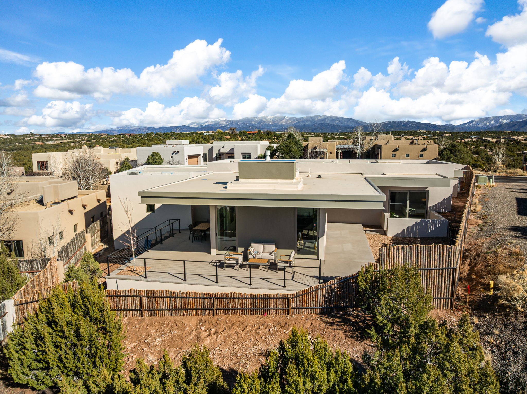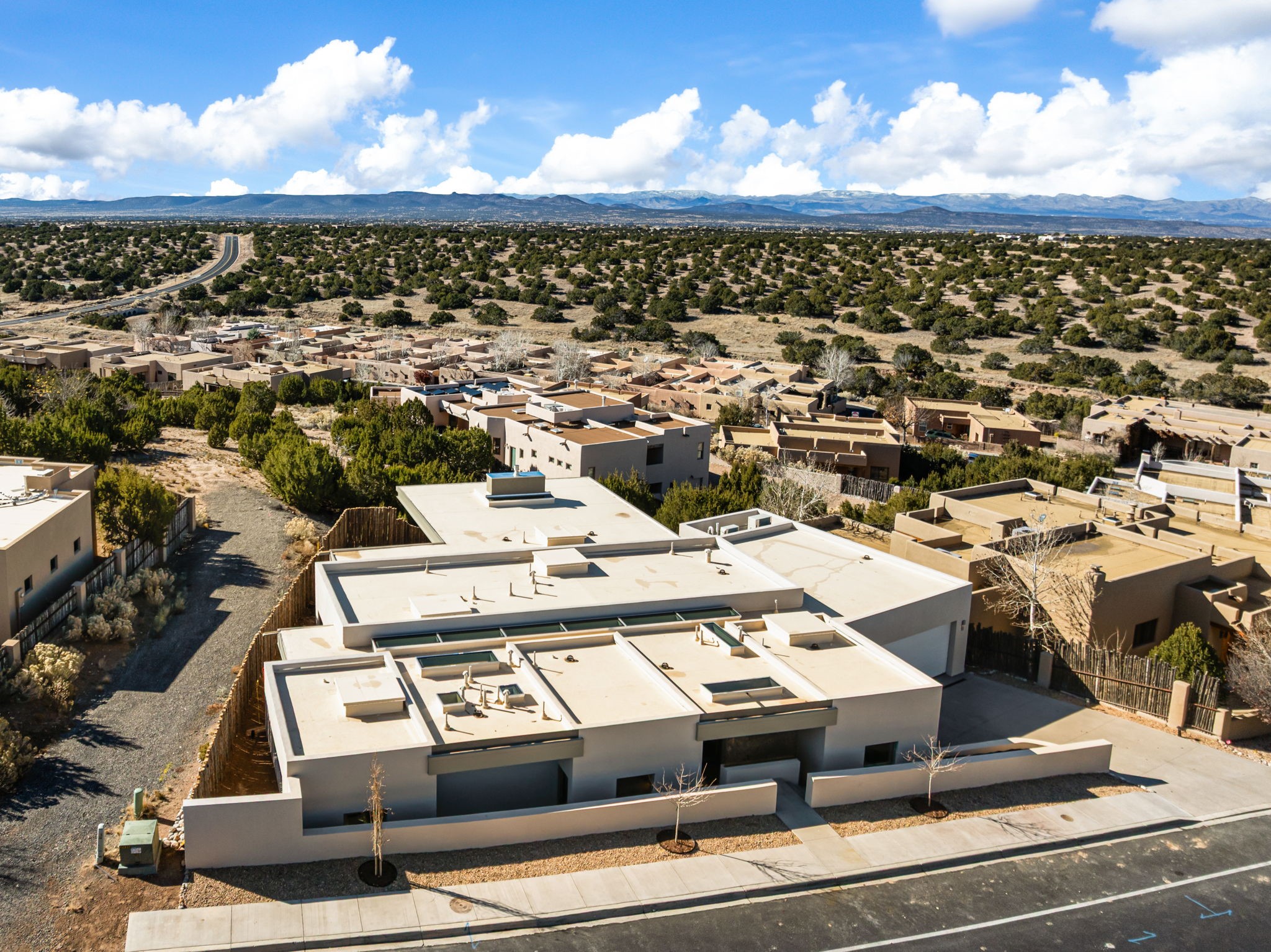 Mesa Modern | Move in now! Experience refined Contemporary Southwestern living in this stunning new construction home by Acacia Builders, a family owned and operated firm renowned for crafting sophisticated, high quality residences. Nestled in the desirable Aldea de Santa Fe community, this 3-bedroom + office home blends modern design with timeless craftsmanship. Just completed, the home Features: Sleek concrete flooring throughout, lux radiant in-floor heating, expansive picture windows that capture western views of the Jemez Mountains, and clean architectural lines that define contemporary elegance. Thoughtfully designed using Eco Friendly, ICF construction materials (insulated concrete forms) and a floorplan to maximize light and space, this residence will offer an ideal balance of form and function — perfect for both serene living and stylish entertaining. With a legacy rooted in quality, attention to detail, and innovation, Acacia Builders delivers a home where every design choice reflects a deep commitment to excellence and modern aesthetics. Now is your opportunity to own a future-forward home in one of Santa Fe’s most sought-after communities.