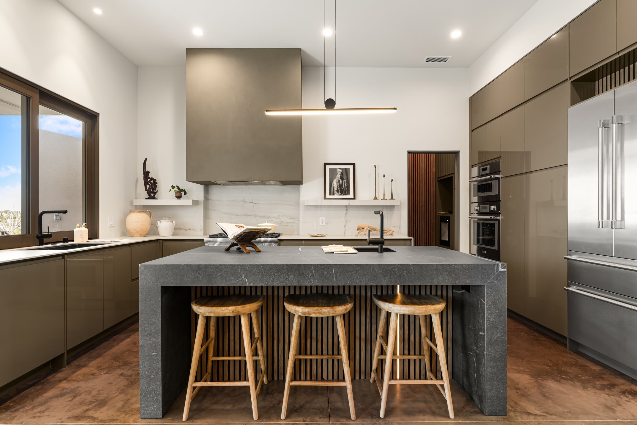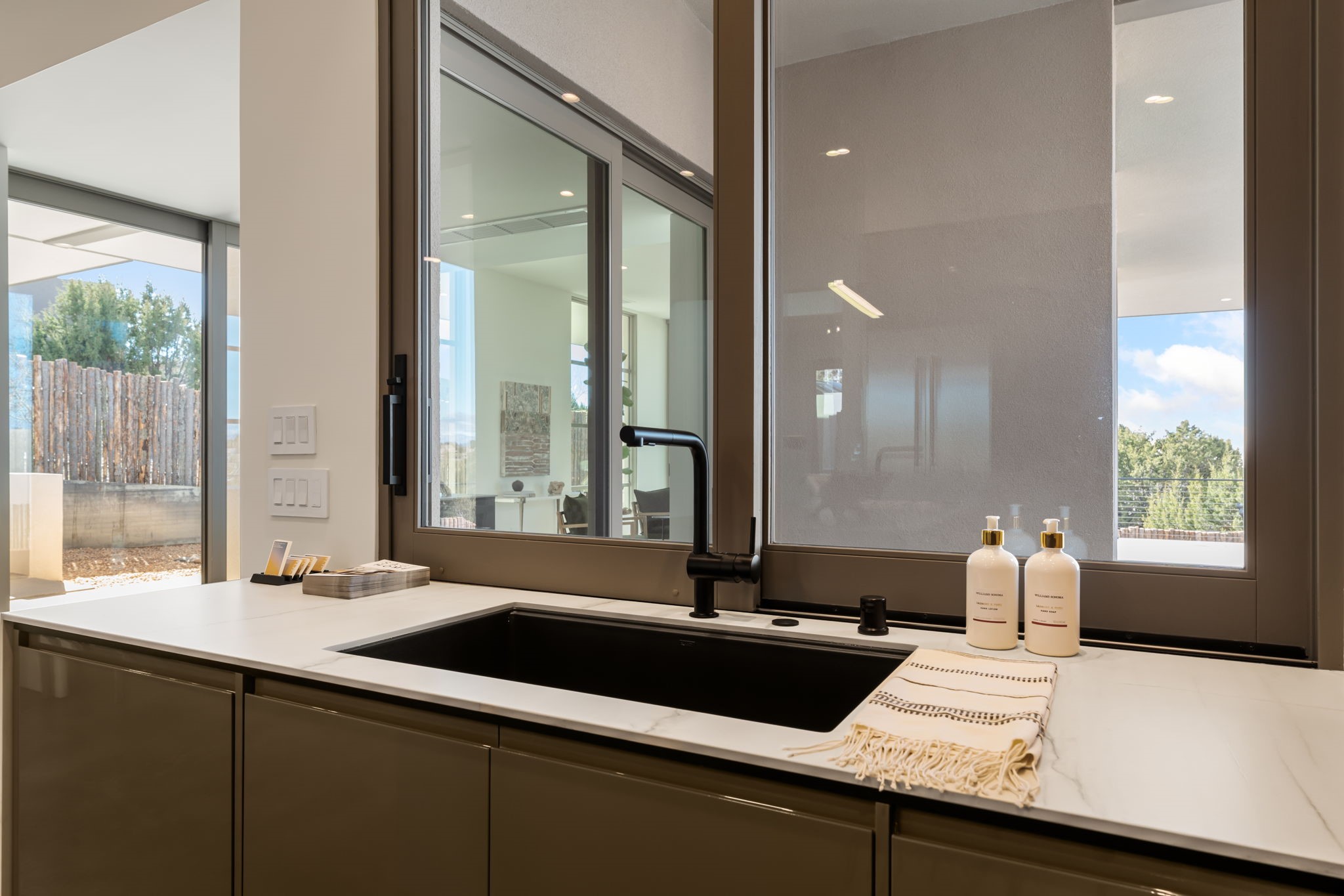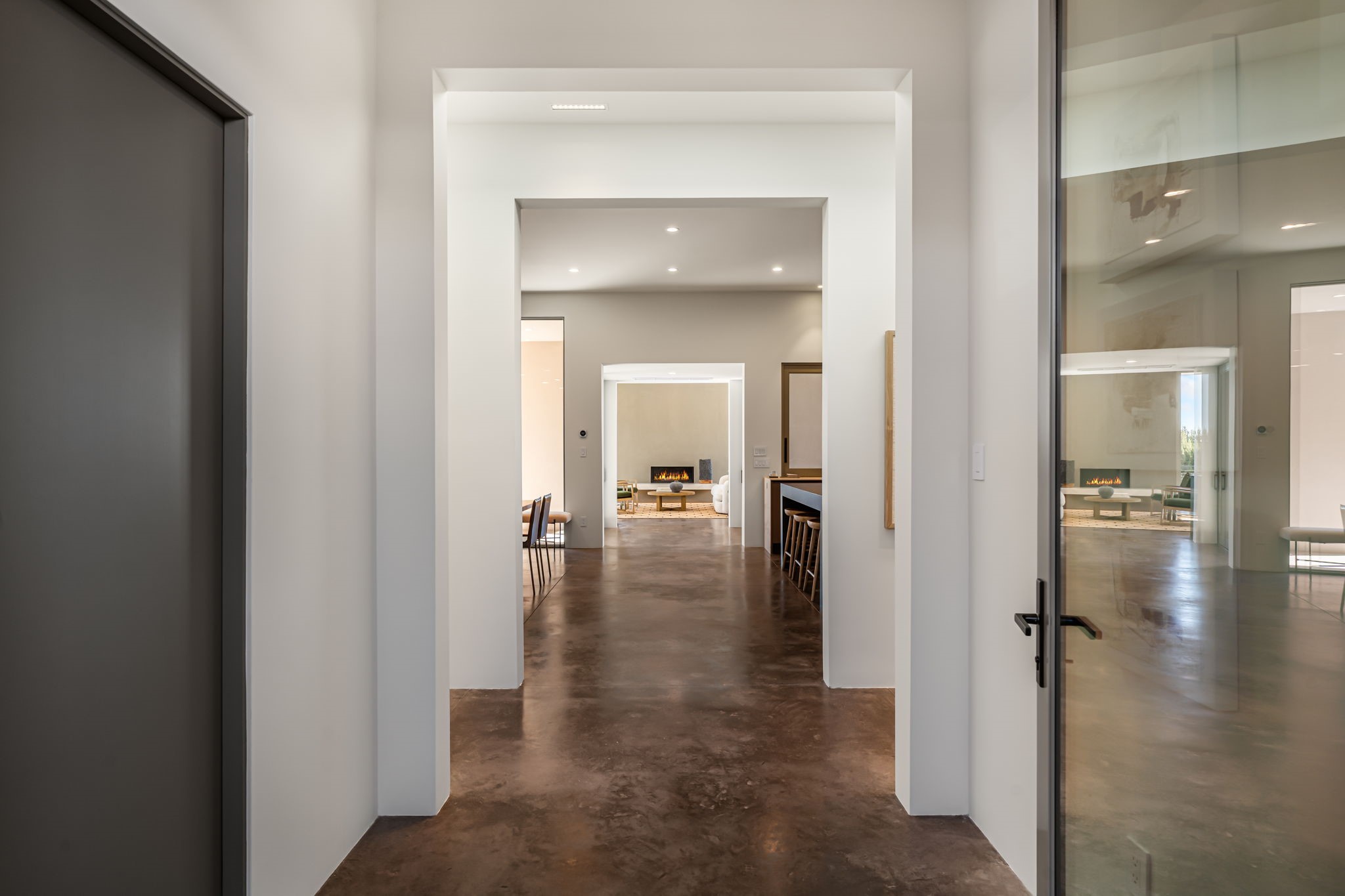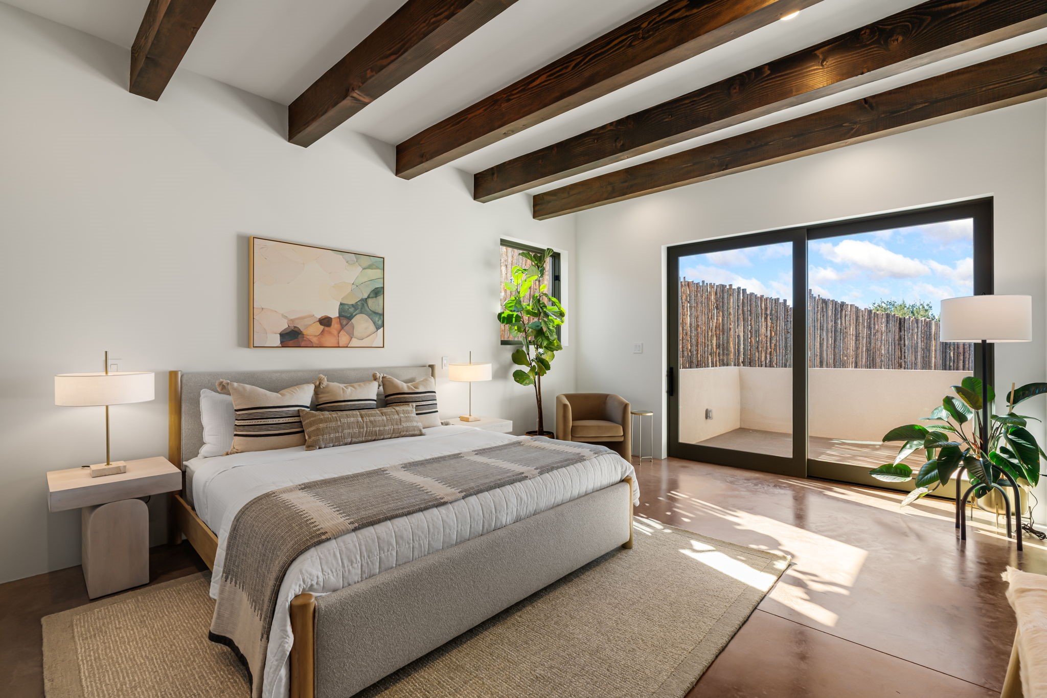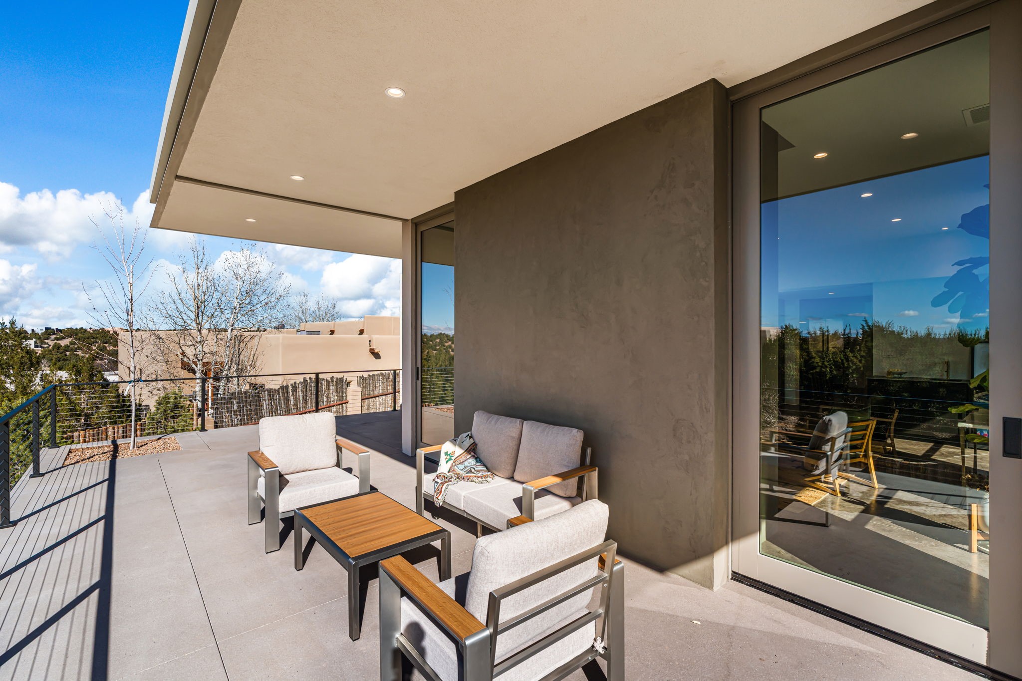 Mesa Modern | Move in now! Experience refined Contemporary Southwestern living in this stunning new construction home by Acacia Builders, a family owned and operated firm renowned for crafting sophisticated, high quality residences. Nestled in the desirable Aldea de Santa Fe community, this 3-bedroom + office home blends modern design with timeless craftsmanship. Just completed, the home Features: Sleek concrete flooring throughout, lux radiant in-floor heating, expansive picture windows that capture western views of the Jemez Mountains, and clean architectural lines that define contemporary elegance. Thoughtfully designed using Eco Friendly, ICF construction materials (insulated concrete forms) and a floorplan to maximize light and space, this residence will offer an ideal balance of form and function — perfect for both serene living and stylish entertaining. With a legacy rooted in quality, attention to detail, and innovation, Acacia Builders delivers a home where every design choice reflects a deep commitment to excellence and modern aesthetics. Now is your opportunity to own a future-forward home in one of Santa Fe’s most sought-after communities.