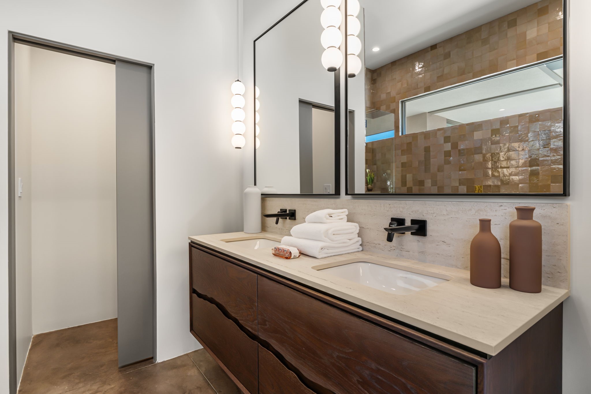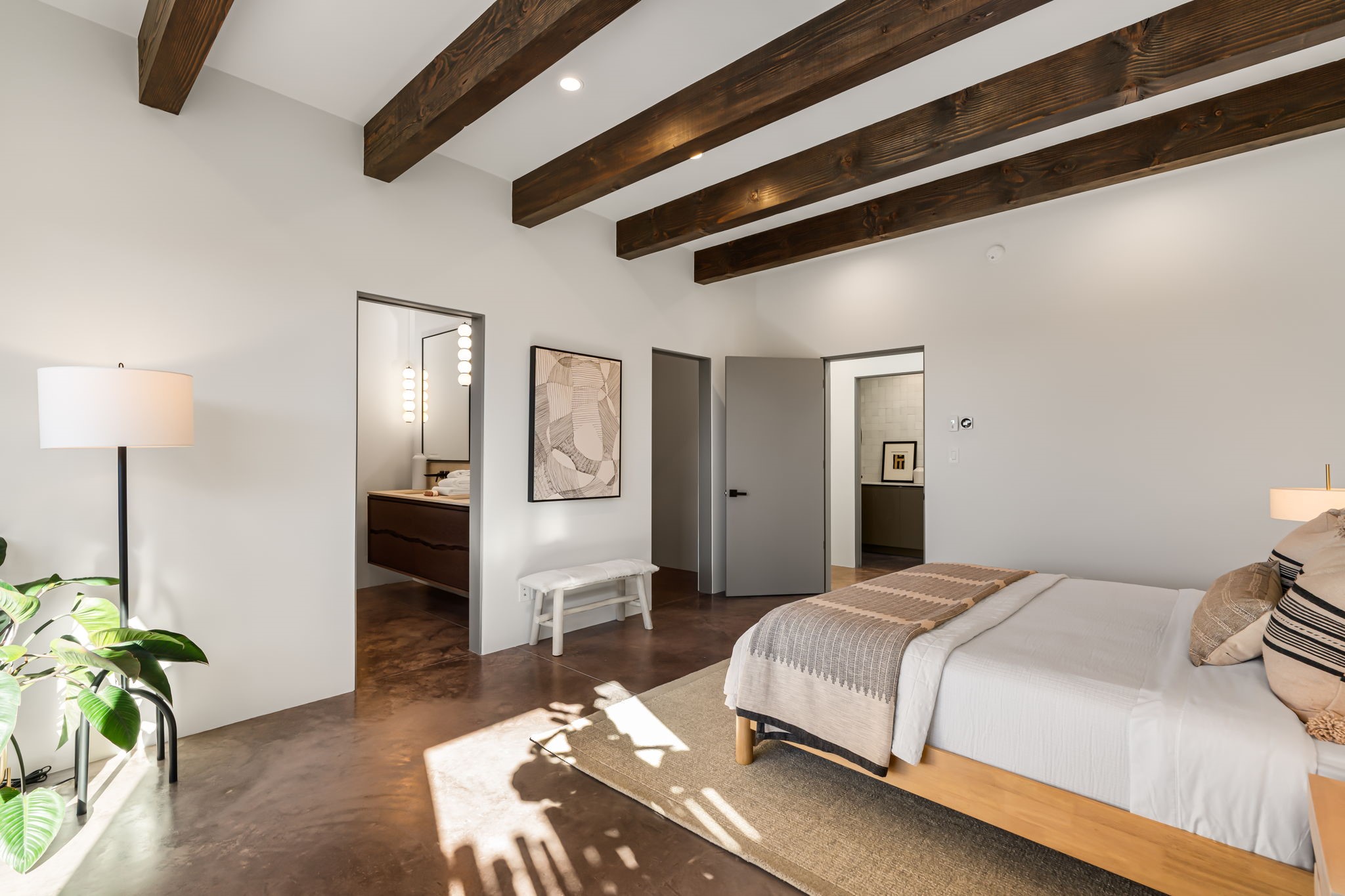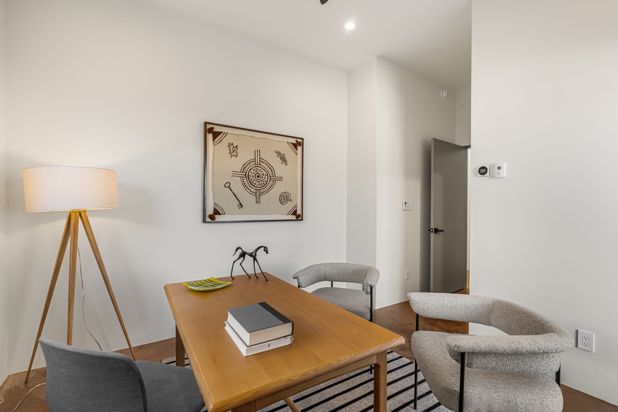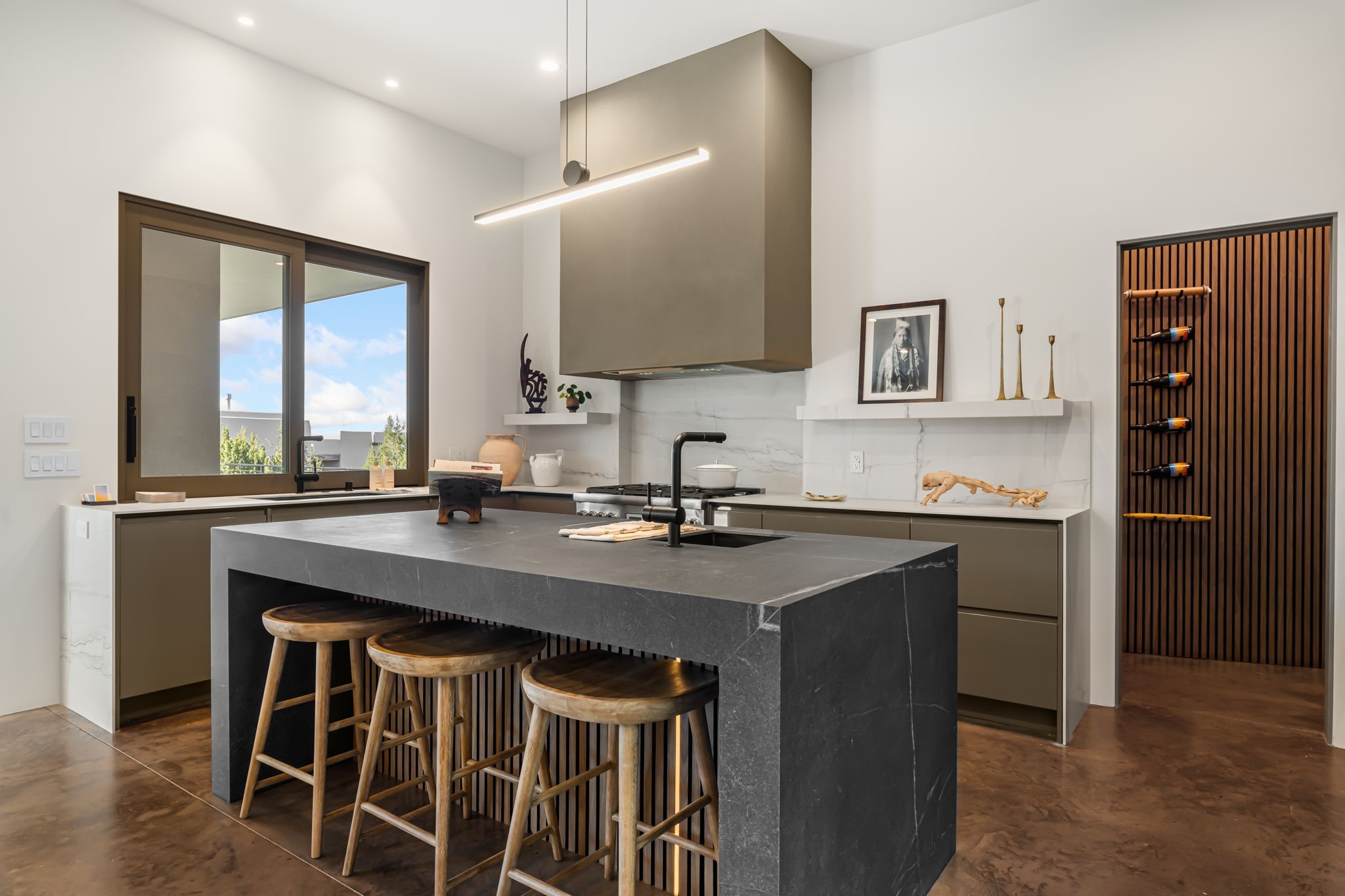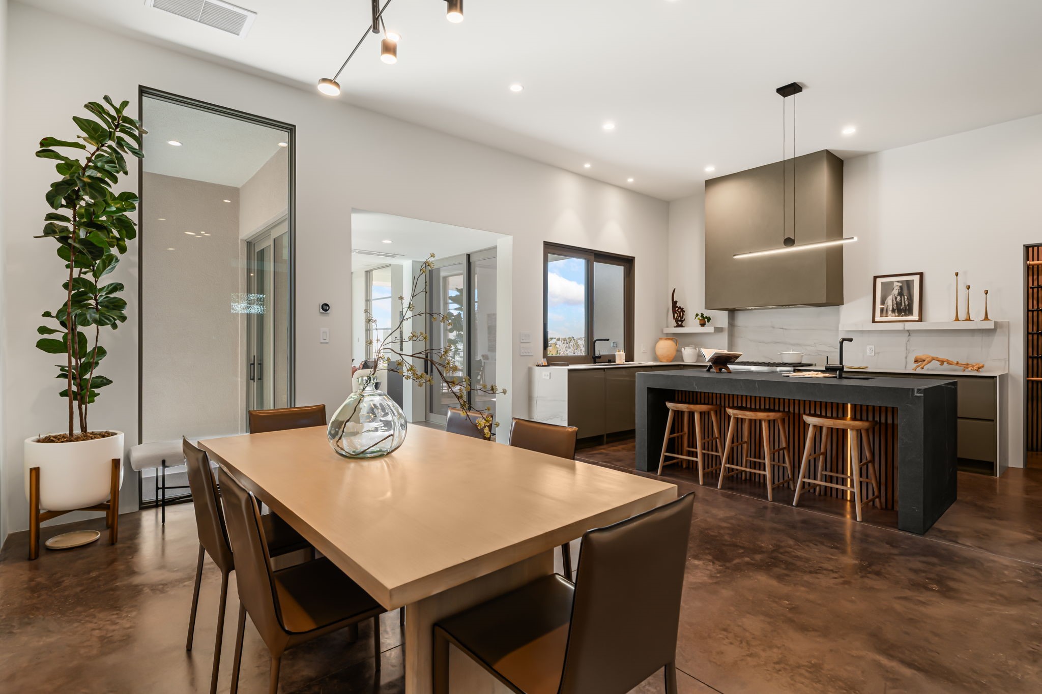 Mesa Modern | Move in now! Experience refined Contemporary Southwestern living in this stunning new construction home by Acacia Builders, a family owned and operated firm renowned for crafting sophisticated, high quality residences. Nestled in the desirable Aldea de Santa Fe community, this 3-bedroom + office home blends modern design with timeless craftsmanship. Just completed, the home Features: Sleek concrete flooring throughout, lux radiant in-floor heating, expansive picture windows that capture western views of the Jemez Mountains, and clean architectural lines that define contemporary elegance. Thoughtfully designed using Eco Friendly, ICF construction materials (insulated concrete forms) and a floorplan to maximize light and space, this residence will offer an ideal balance of form and function — perfect for both serene living and stylish entertaining. With a legacy rooted in quality, attention to detail, and innovation, Acacia Builders delivers a home where every design choice reflects a deep commitment to excellence and modern aesthetics. Now is your opportunity to own a future-forward home in one of Santa Fe’s most sought-after communities.