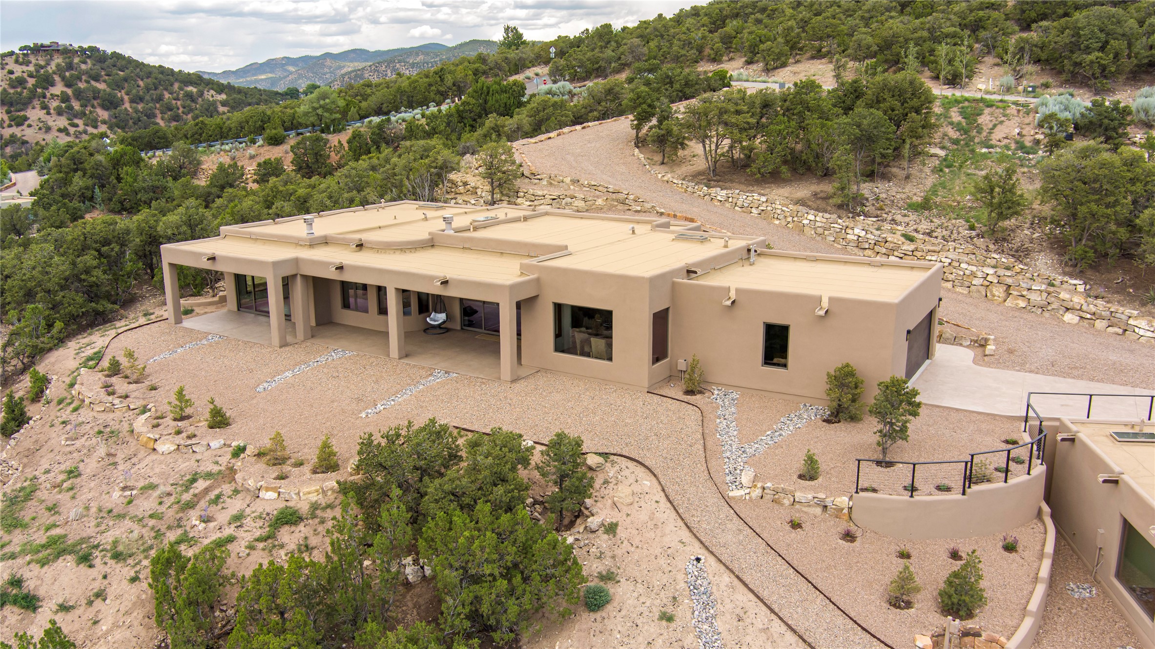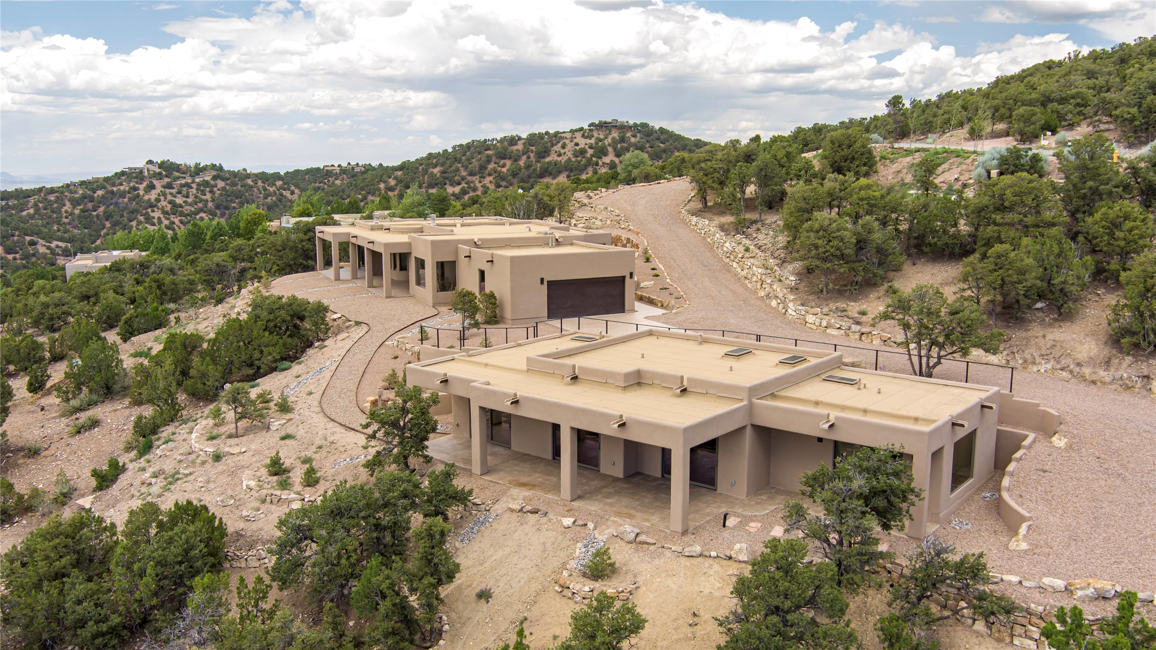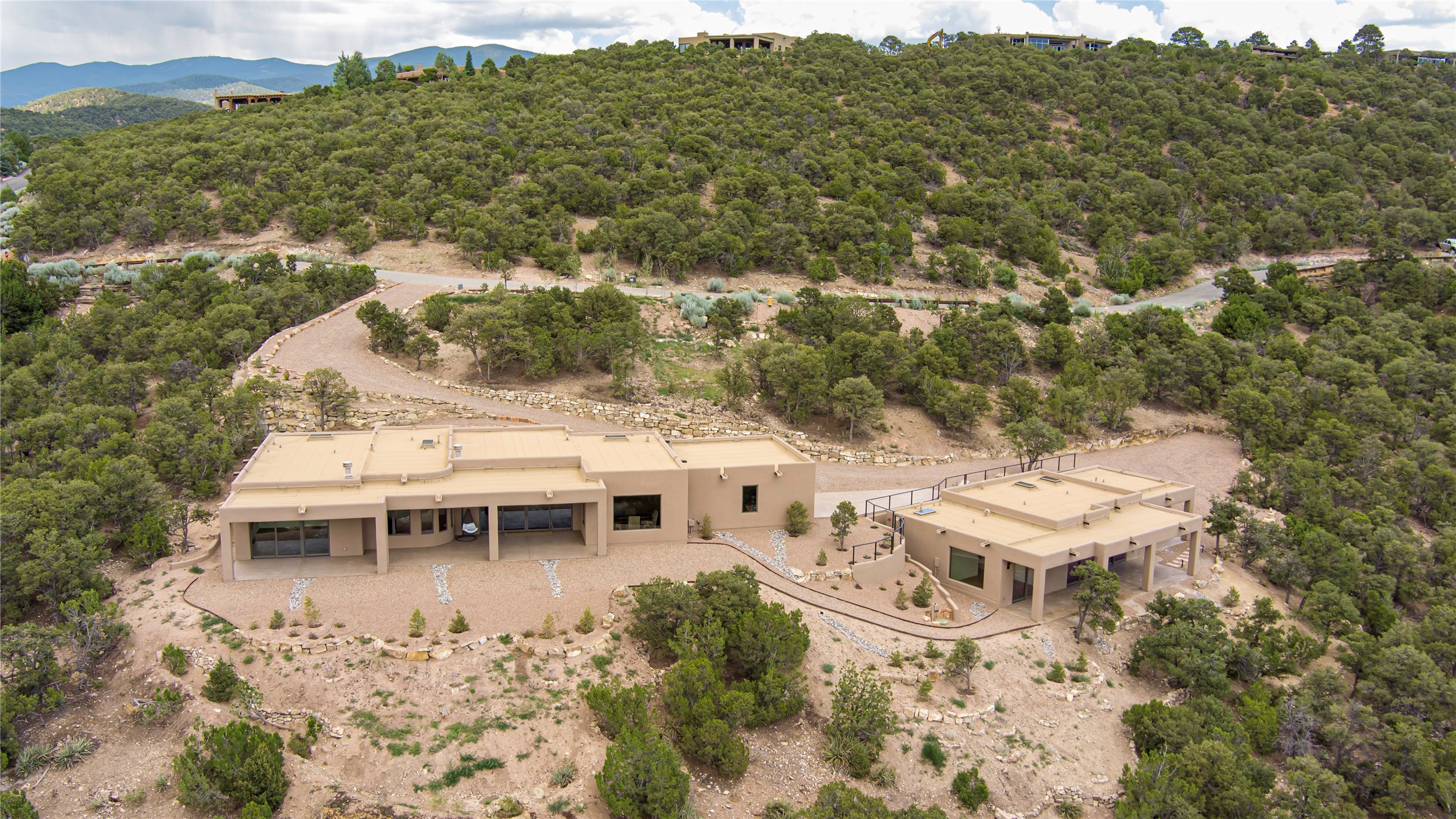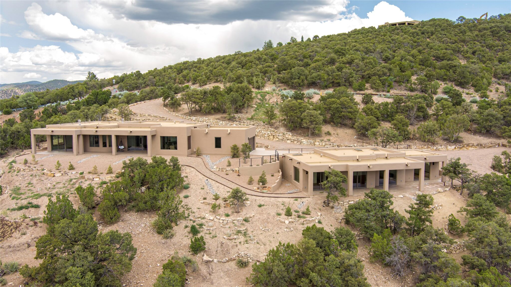 Mountain Living with Breathtaking Views! Discover the perfect blend of luxury and nature in the highly sought-after gated High Summit subdivision. This exceptional property features two contemporary, independent homes perched on a sprawling 2.8± acre lot, offering unparalleled views and tranquility. Prime Location: Just minutes from Santa Fe Plaza, Ski Santa Fe, and scenic hiking and biking trails right outside your door. Main House: 2,461± sq. ft. 2 bedrooms, 2 full baths, an office, and an attached 2-car garage. Guest House: 1,564± sq. ft.2 bedrooms, 2 full baths. Both homes are thoughtfully designed on a single level with no interior steps, offering effortless accessibility. The open-concept layouts boast high-end finishes, including marble and travertine bathrooms, solid wood floors, 8-foot walnut doors, Pella windows, and radiant heating throughout. Each home also features spacious walk-in closets, ductless AC, and expansive covered patios, perfect for outdoor dining or entertaining while soaking in the stunning sunsets. The newly added heated-paved driveway ensures convenience year-round, while the professional landscaping and custom stonework with drip irrigation system enhance the property's natural beauty. Why Choose This Property? Enjoy the serenity of mountain living without sacrificing proximity to Santa Fe's vibrant cultural scene. With world-class restaurants, art galleries, shopping, and entertainment just minutes away, this property offers the ultimate lifestyle for those who cherish both peace and excitement. Don’t miss your chance to own this extraordinary retreat!