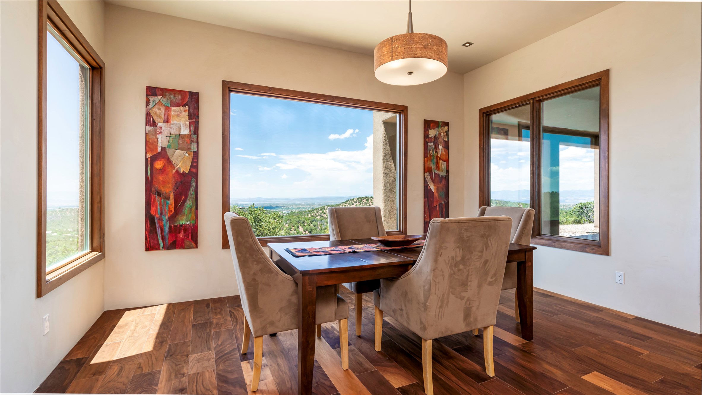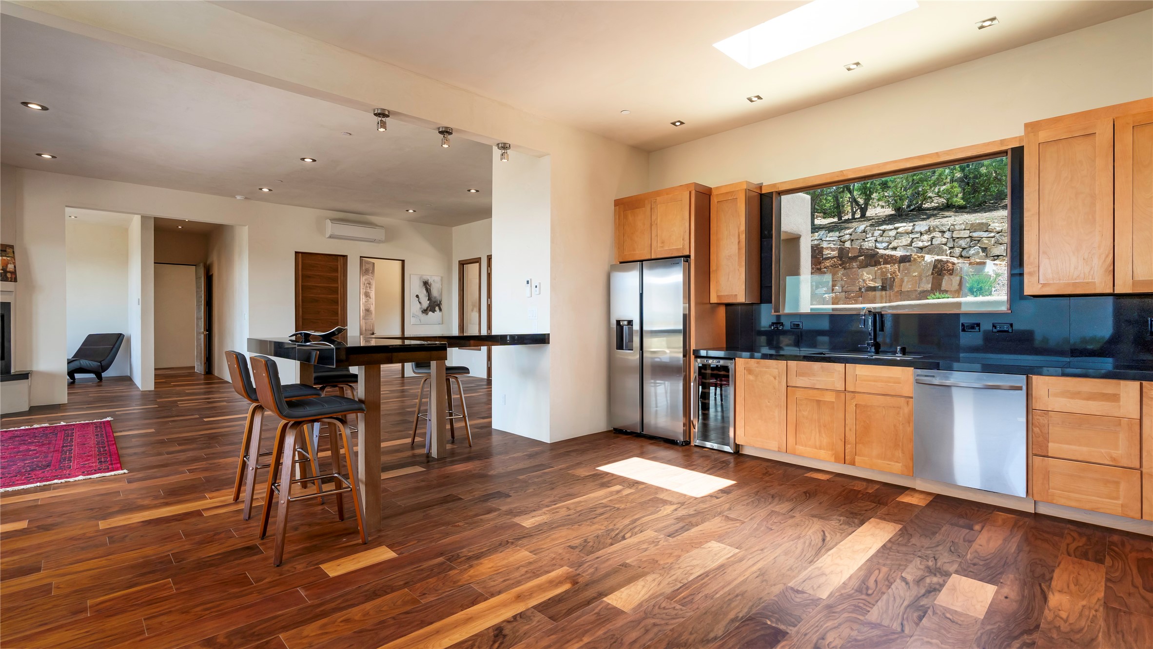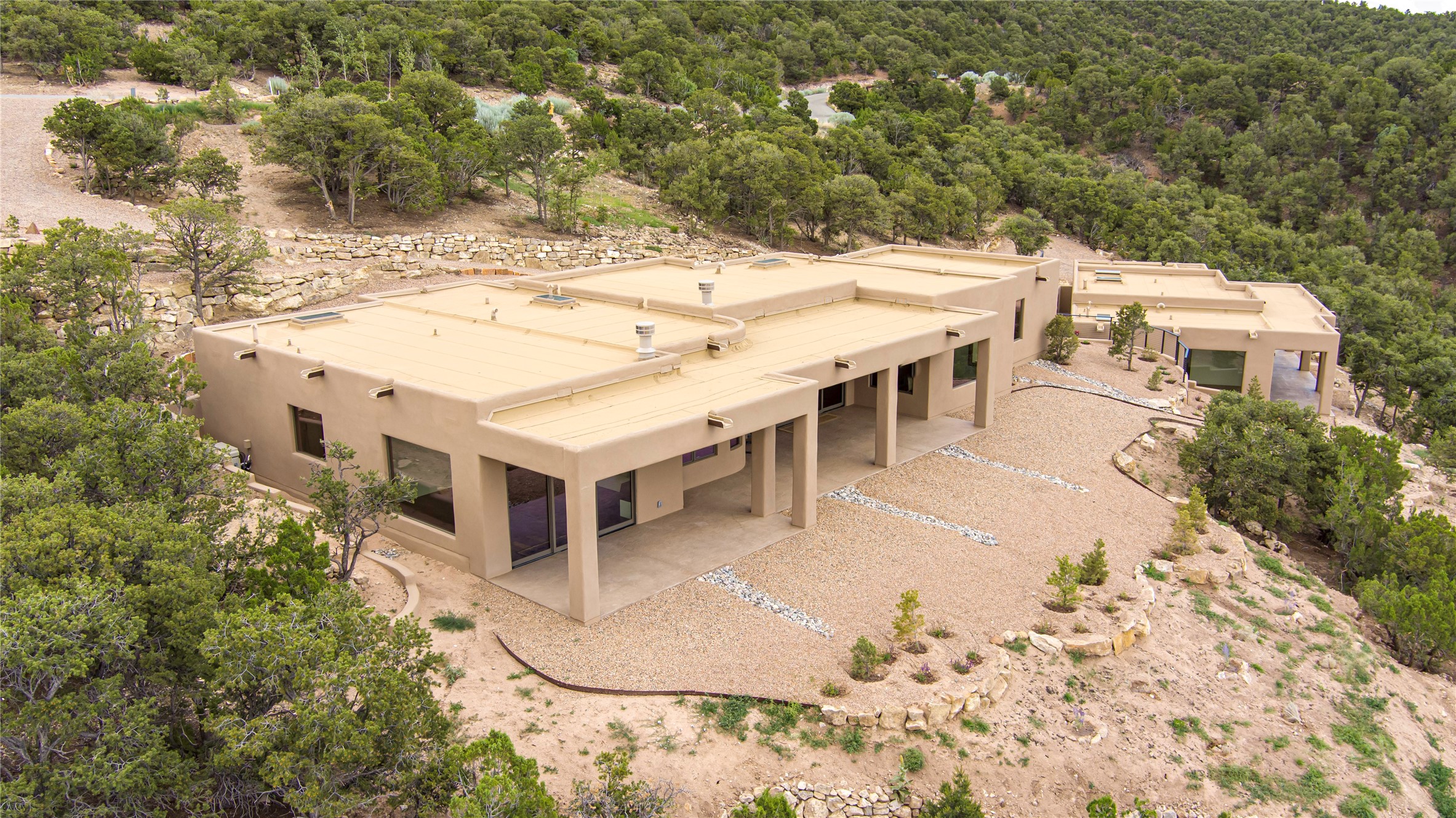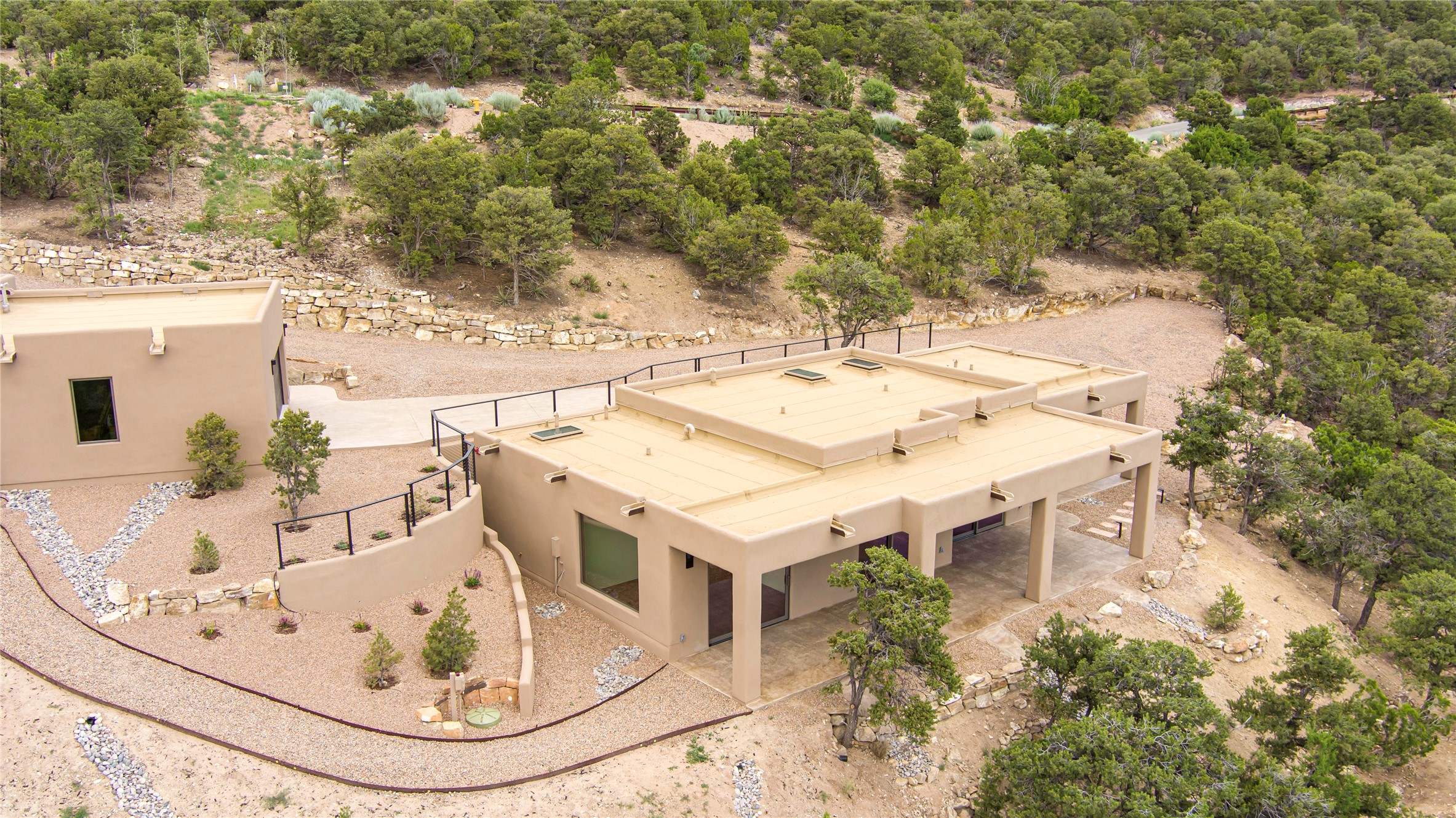 Mountain Living with Breathtaking Views! Discover the perfect blend of luxury and nature in the highly sought-after gated High Summit subdivision. This exceptional property features two contemporary, independent homes perched on a sprawling 2.8± acre lot, offering unparalleled views and tranquility. Prime Location: Just minutes from Santa Fe Plaza, Ski Santa Fe, and scenic hiking and biking trails right outside your door. Main House: 2,461± sq. ft. 2 bedrooms, 2 full baths, an office, and an attached 2-car garage. Guest House: 1,564± sq. ft.2 bedrooms, 2 full baths. Both homes are thoughtfully designed on a single level with no interior steps, offering effortless accessibility. The open-concept layouts boast high-end finishes, including marble and travertine bathrooms, solid wood floors, 8-foot walnut doors, Pella windows, and radiant heating throughout. Each home also features spacious walk-in closets, ductless AC, and expansive covered patios, perfect for outdoor dining or entertaining while soaking in the stunning sunsets. The newly added heated-paved driveway ensures convenience year-round, while the professional landscaping and custom stonework with drip irrigation system enhance the property's natural beauty. Why Choose This Property? Enjoy the serenity of mountain living without sacrificing proximity to Santa Fe's vibrant cultural scene. With world-class restaurants, art galleries, shopping, and entertainment just minutes away, this property offers the ultimate lifestyle for those who cherish both peace and excitement. Don’t miss your chance to own this extraordinary retreat!