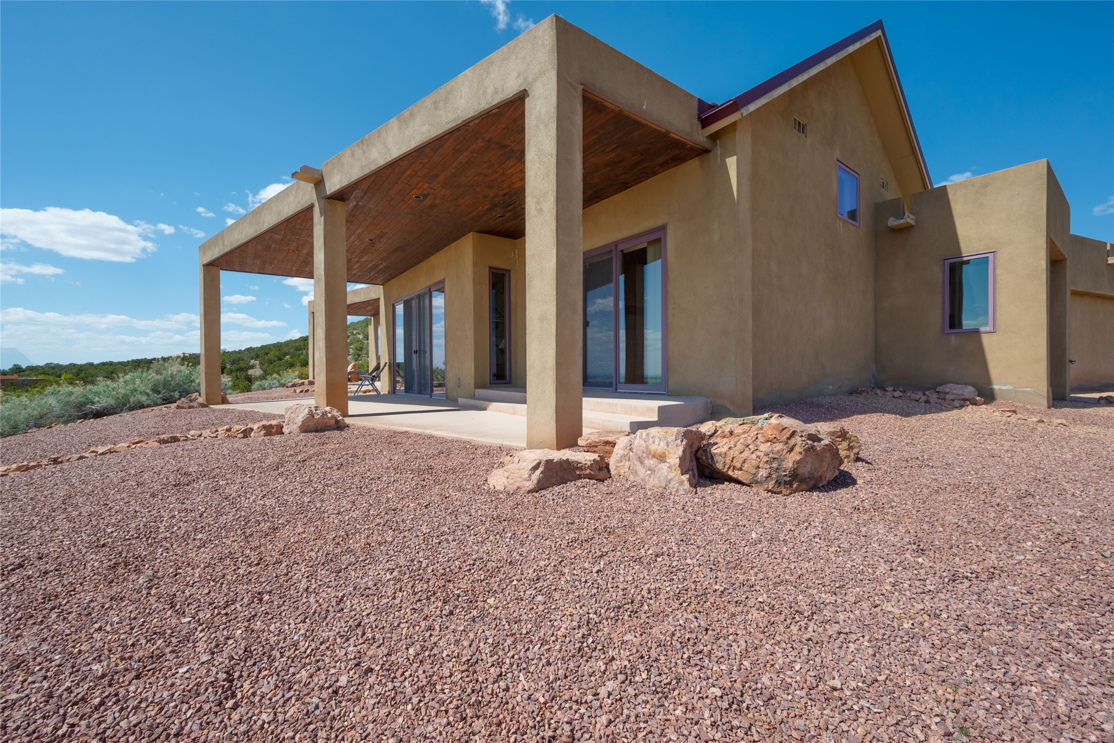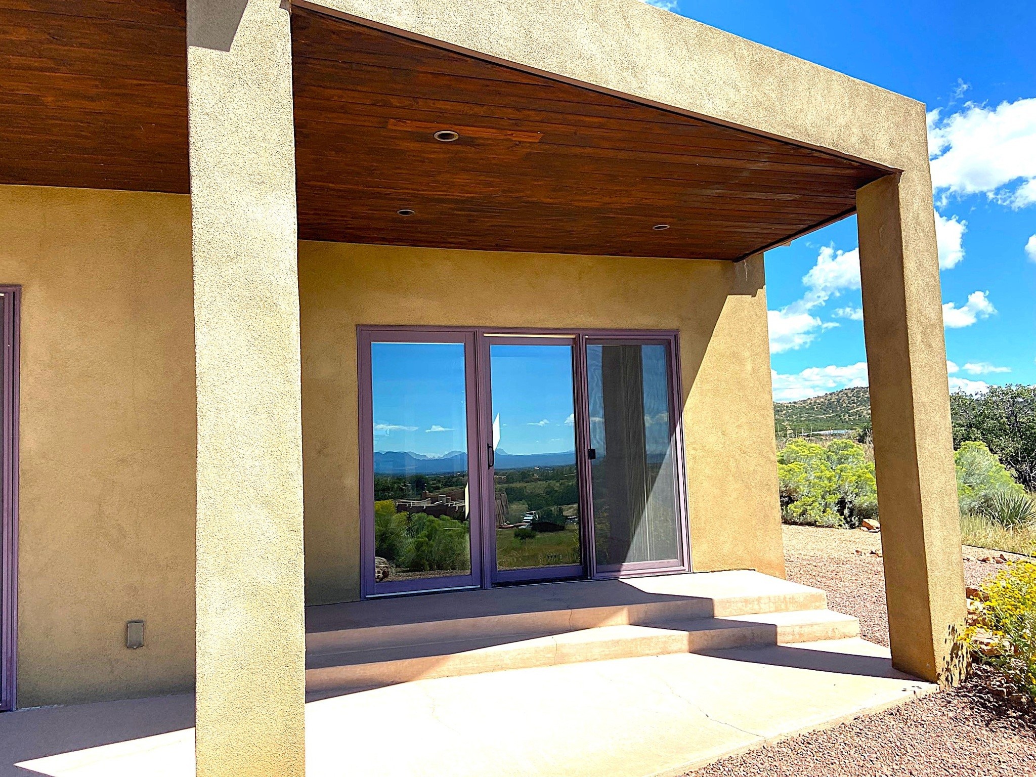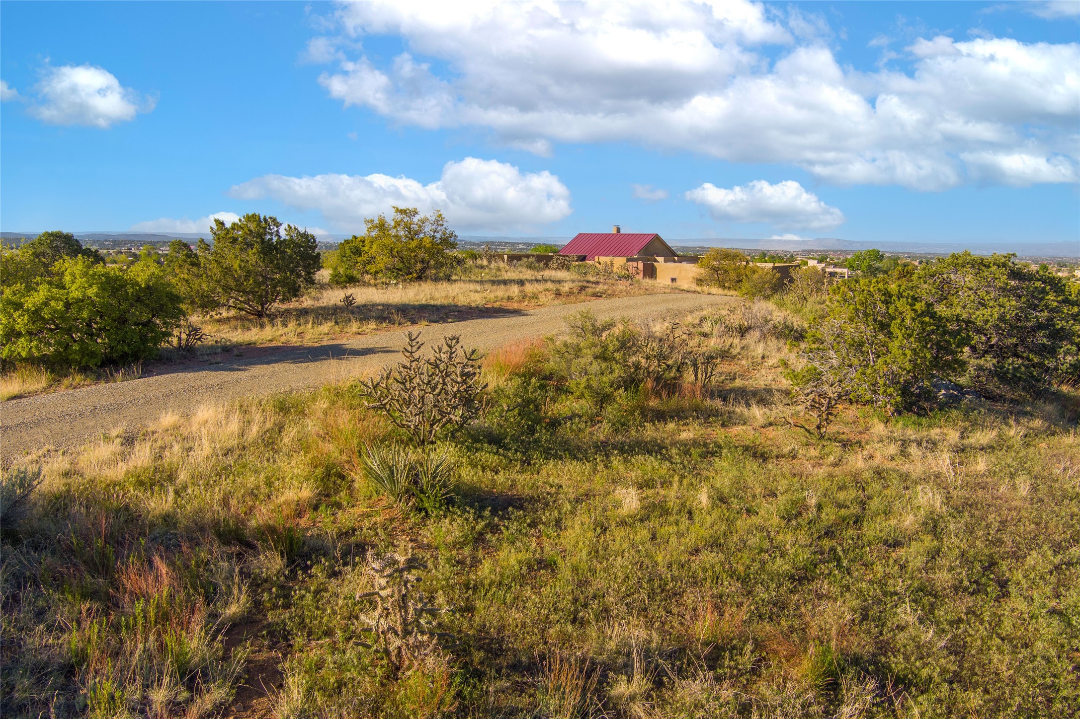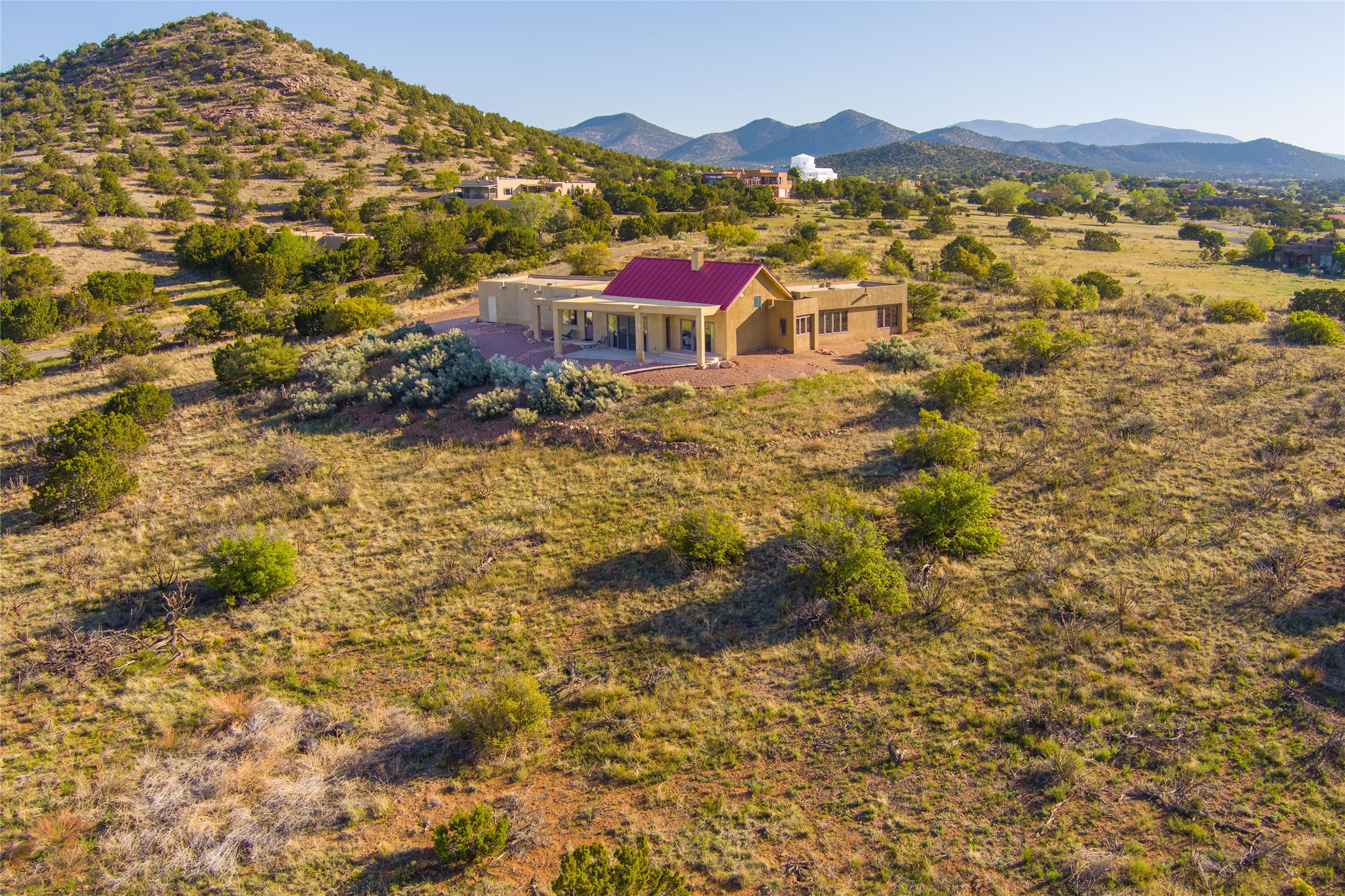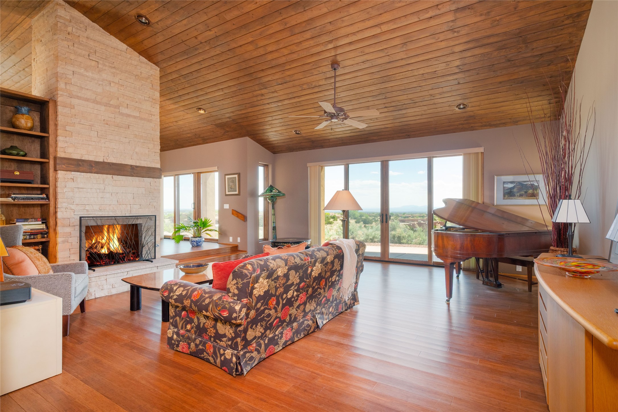 This stunning custom one-owner home on 2.8 acres offers breathtaking mountain and sunset views with a design that blends elegance and comfort. The light-filled open main living area is anchored by a striking stone veneer fireplace, complemented by bamboo wood flooring and soaring cathedral wood deck ceilings. A chef’s kitchen with quartz countertops, gas cooking, and modern finishes pairs beautifully with radiant heating and a central vacuum system for convenience. The expansive primary suite boasts sweeping views, a generous walk-in closet, and a spa-like bath retreat, while two guest bedrooms and a separate office provide space for family and work. The spacious garage includes a lockable storage room, and spacious covered patios invite year-round outdoor living while soaking in the panoramic scenery. The Dos Griegos community is conveniently located for easy access to I-25 and Santa Fe. Local dining, shopping and recreation options are within minutes of the home.