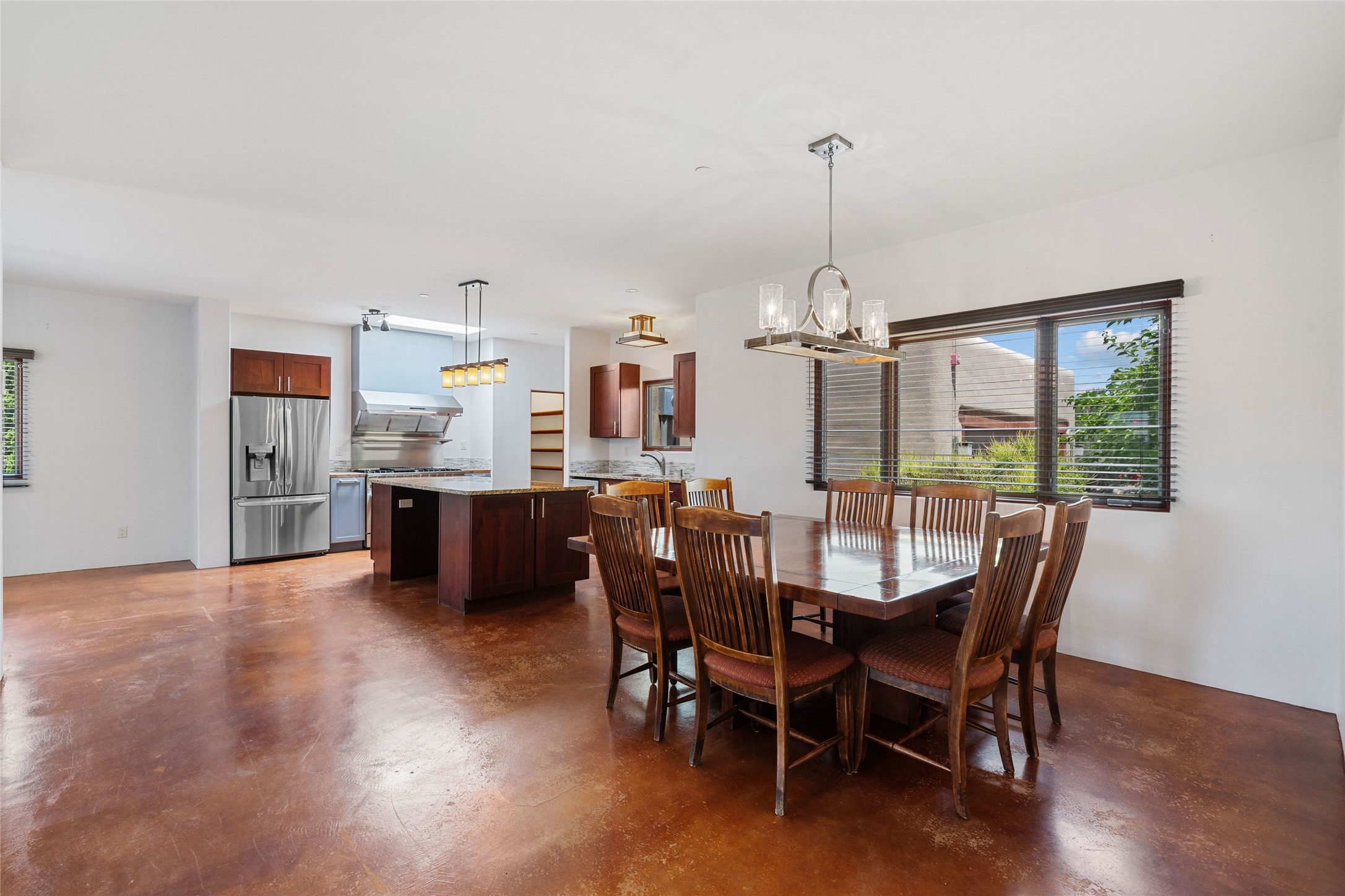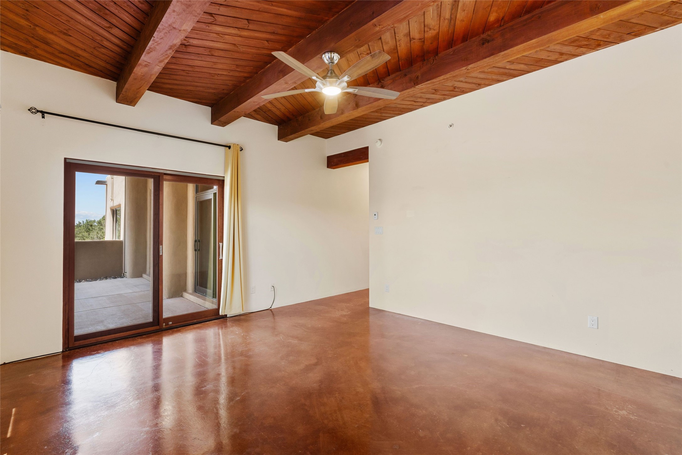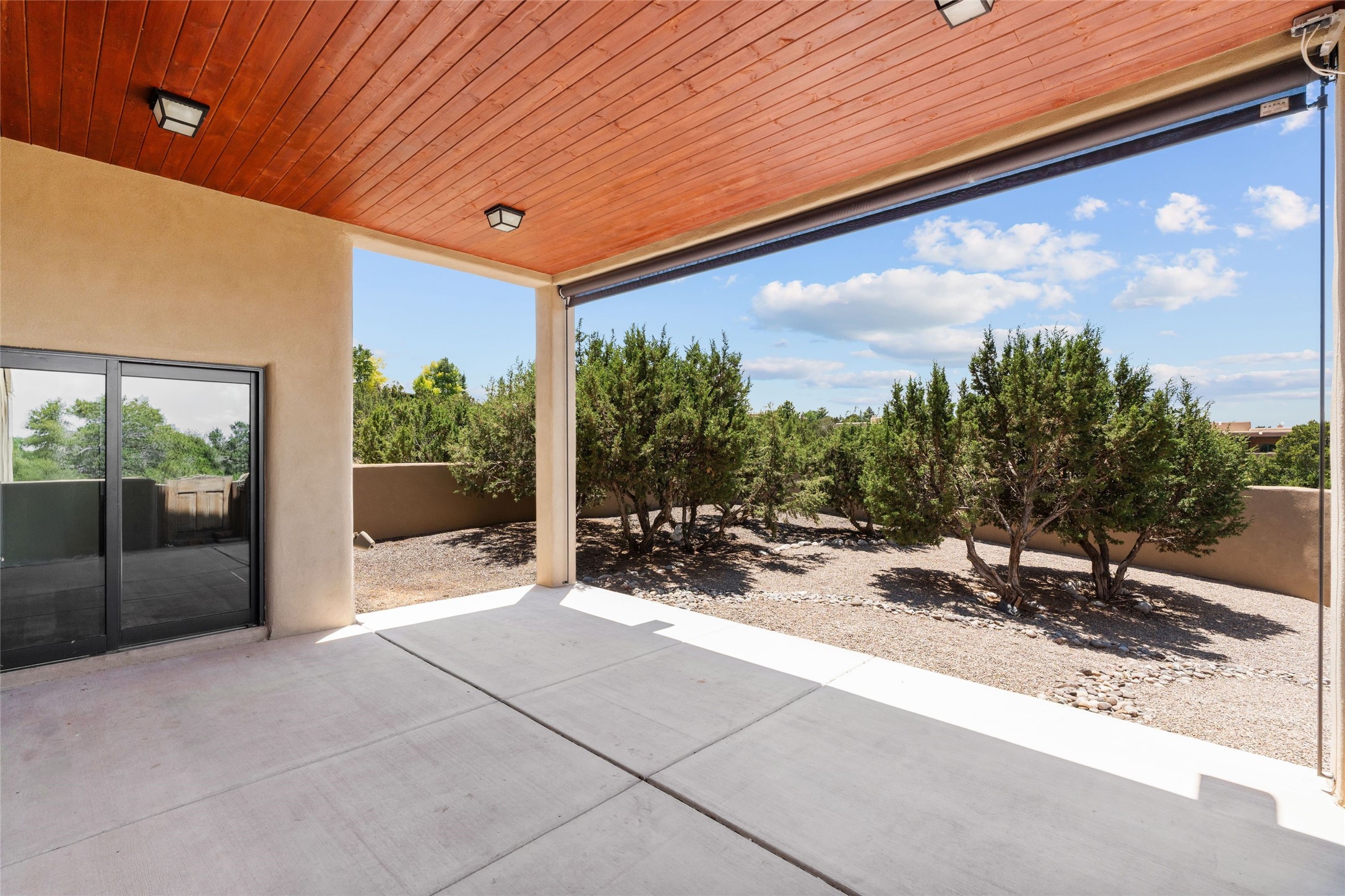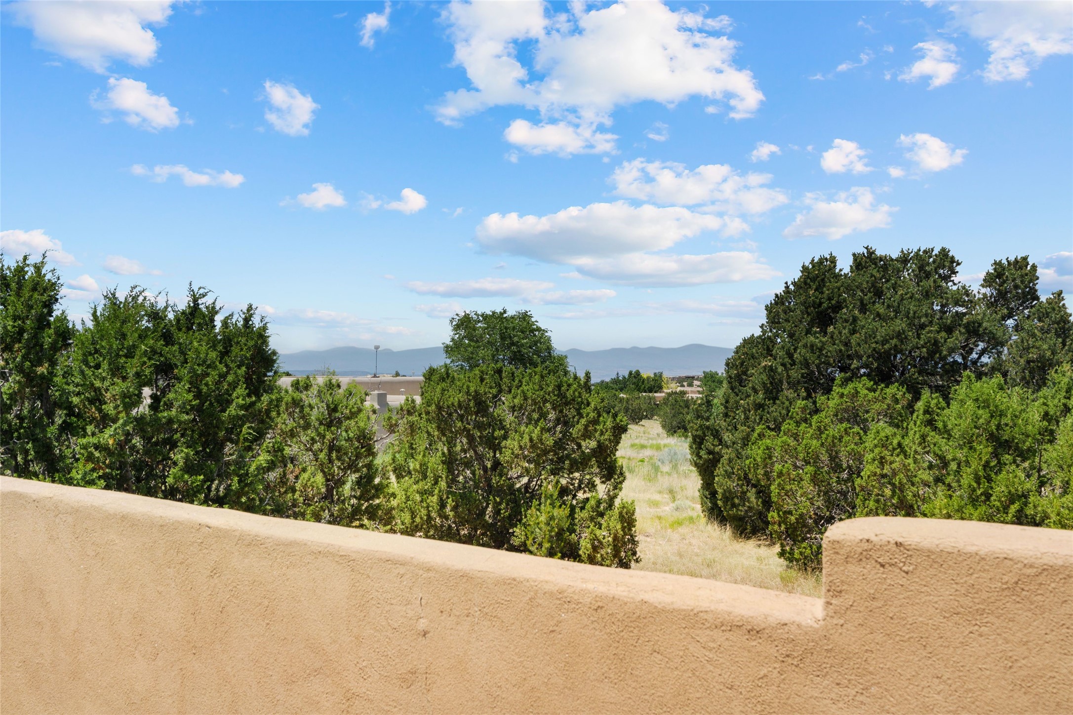 Heartstone community 3-bedroom, 3.5-bath soft contemporary home featuring sleek concrete floors, harmoniously paired with traditional Santa Fe elements, including iconic vigas and beams. Designed for convenience, this single-level property offers a spacious layout with no interior steps, making it accessible and easy to navigate. Enjoy the luxury of two living areas, ideal for relaxation and entertaining friends and family. The large kitchen and dining area provide the perfect backdrop for memorable gatherings. Step outside to the back portal, where a generous backyard awaits, offering sweeping views of the Jemez mountains that elevate outdoor living. In addition, enjoy Sangre de Cristo views from the front. Heartstone is characterized by half-acre lots, thoughtfully arranged around a shared meadow and many acres of permanently dedicated open space, fostering a connection to nature and tranquility. For those who enjoy an active lifestyle, the community is surrounded by a network of trails, granting access to the La Tierra Trails—a multi-use system featuring 25 miles of paths designed for hikers, cyclists, and equestrians alike. The community house serves as a venue for social gatherings and activities, complemented by exercise areas and a media room. Located in the desirable Tano Road area, this residence provides easy access to the vibrant Santa Fe Plaza, the artistic charm of Canyon Road, the Santa Fe's Farmer’s Market, and the renowned Santa Fe Opera.